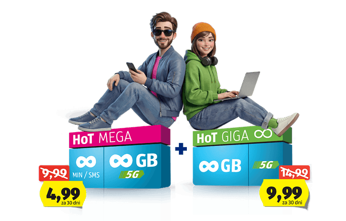 samo 4,99 € / mesec (redna cena 9,99 € / mesec). - Internetni paket za doma ali v pisarni HoT GIGA v dvojčku samo 9,99 € za vedno